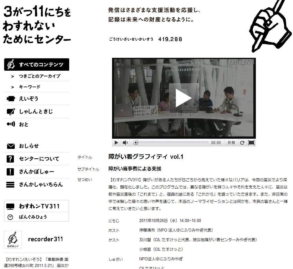 そして先月から毎月1回、計5回の予定で「障害者」というテーマで情報発信することになりました。今回の震災では多くのメディアが要援護者である障害者を取り上げましたが、マスメディアには載らない思いや取り組み、そして今後の復興について、当事者自身や関係者に発信してもらうというのが大きな目的です。