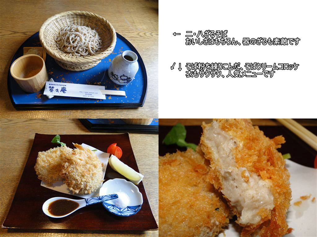 今回、私が頂いたのは女将さんが打ち上げる「二・八ざるそば」とそば粉を入れた「そばクリームコロッケ」。特にそばクリームコロッケは、珍しさもあって注文したのですが、中はふんわりそばの風味、衣はサクサクジューシーで本当においしかったです
