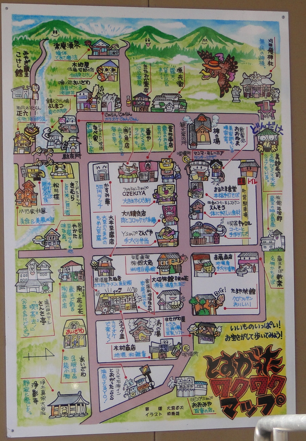 昨日紹介したわくわくマップを見ながら温泉街を歩くと、いろんなお店がありました
